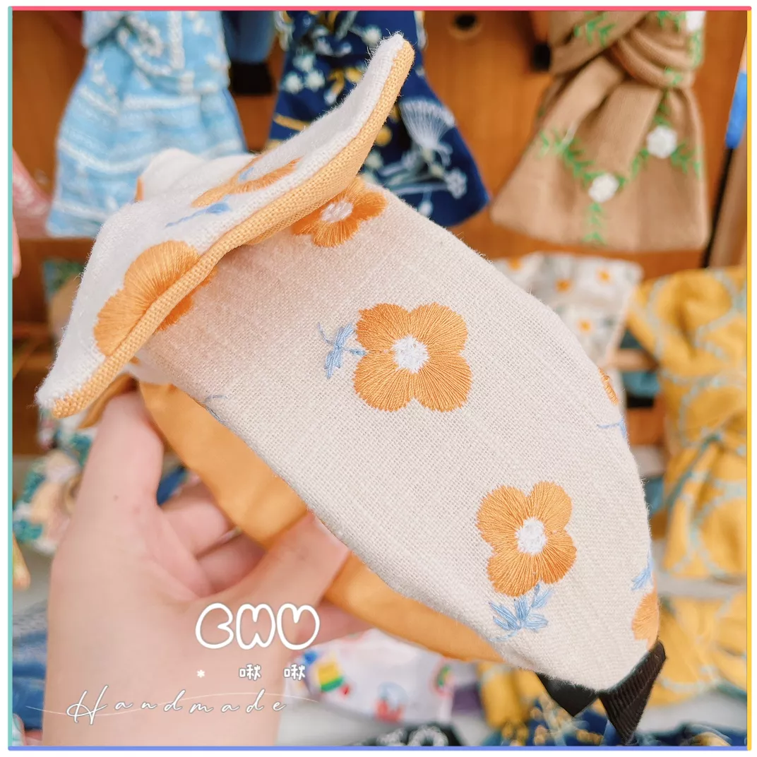 刺繡款| 小黃花朵🌼 |寬版 蝴蝶結 髮箍