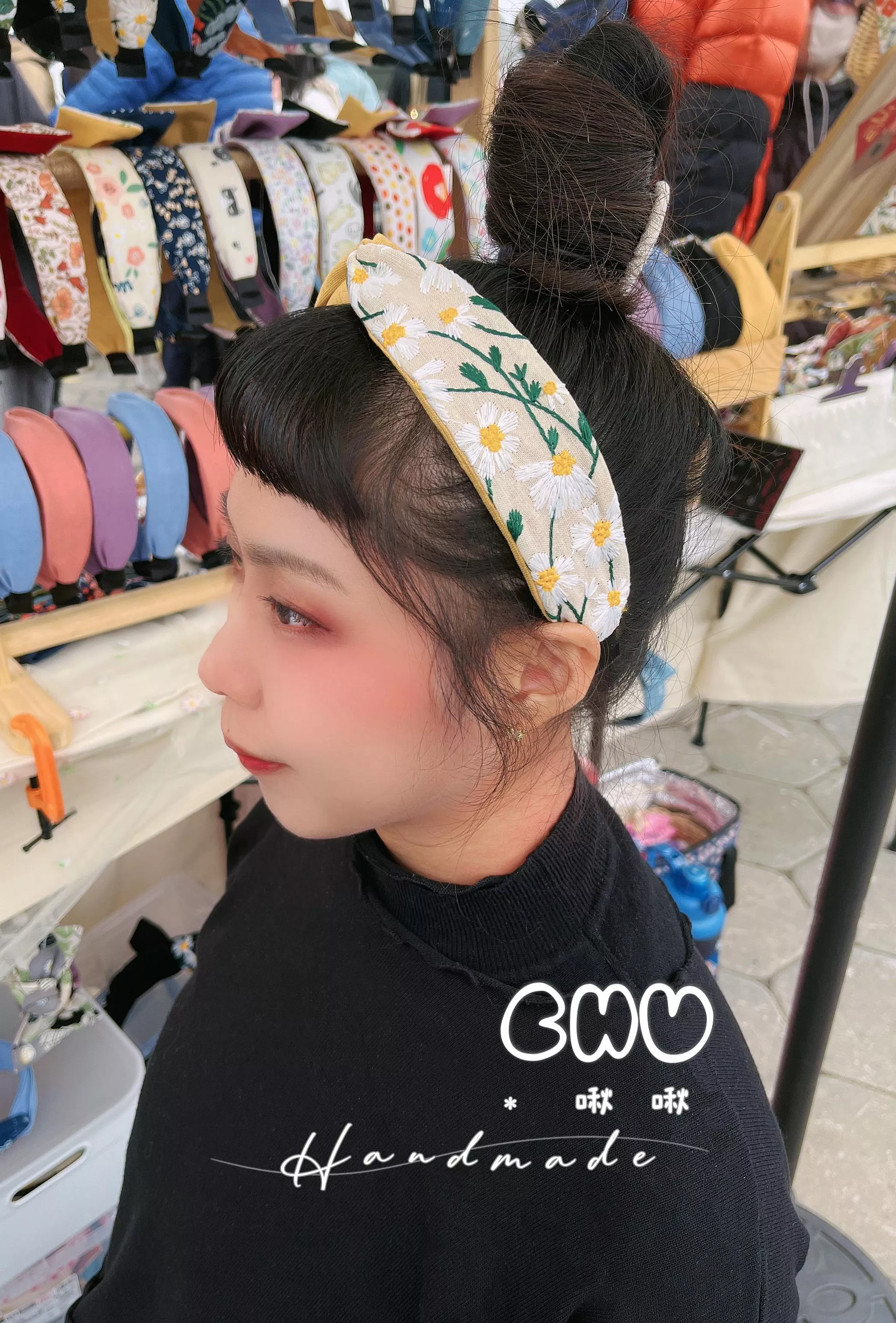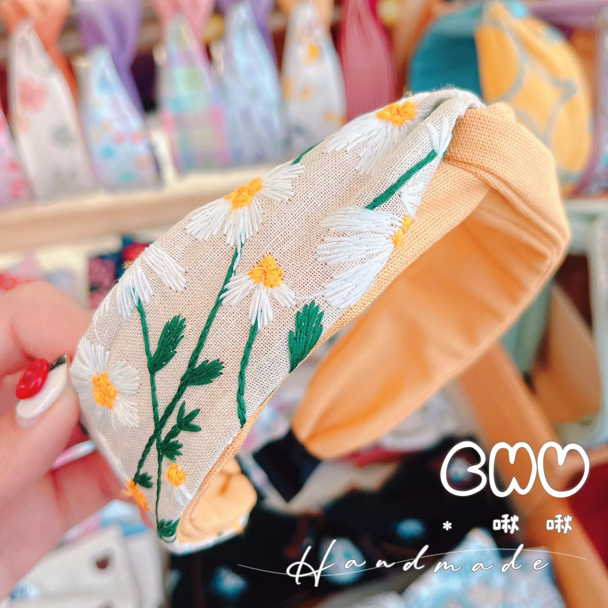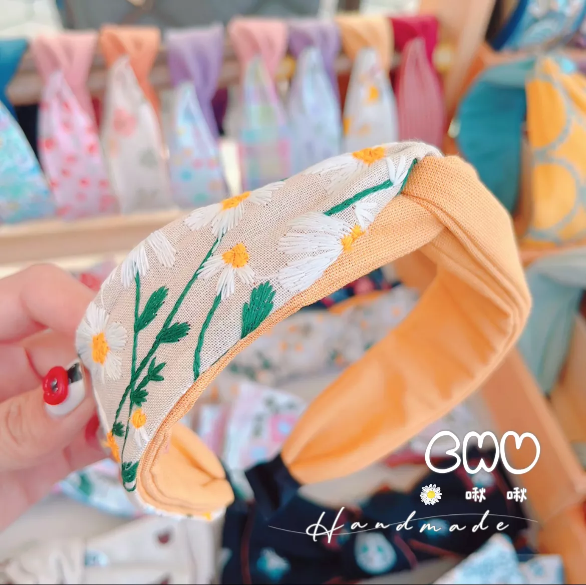 刺繡滿版雛菊🌼米白色|細版交叉髮箍