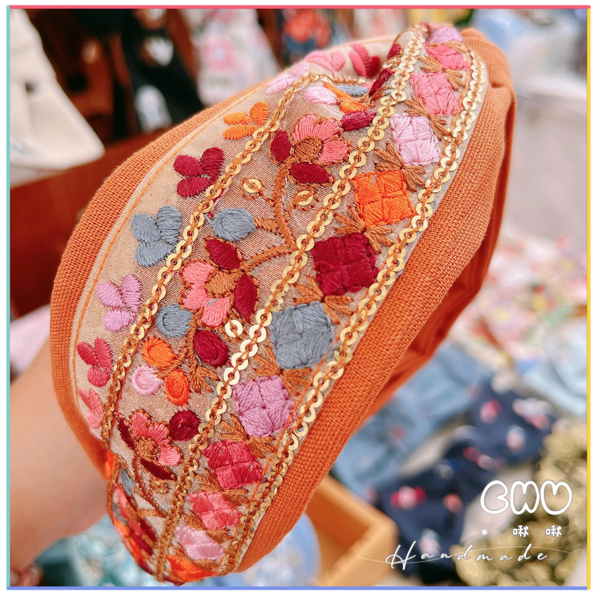 印度刺繡絲帶|梅莉達|寬版 交叉髮箍