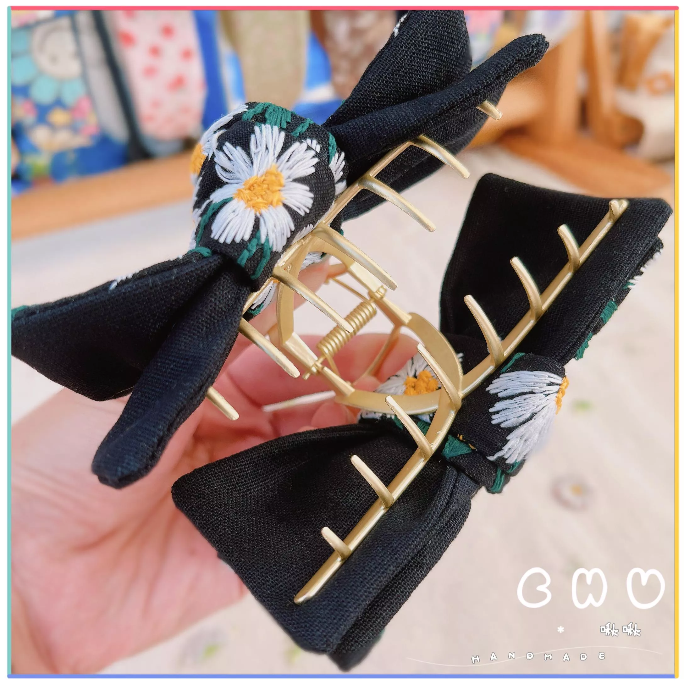刺繡款|滿版雛菊🌼 (黑色)|鯊魚夾 (抓夾)