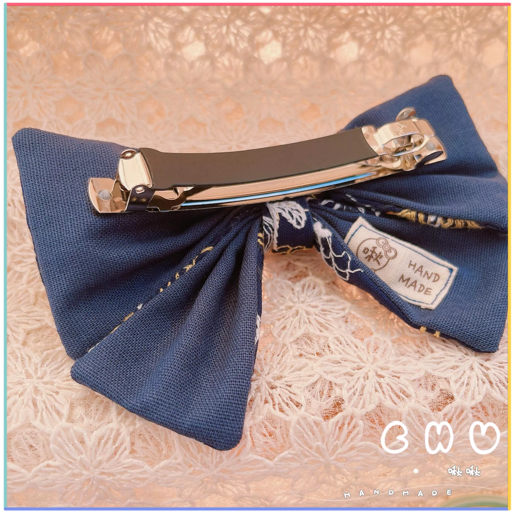 刺繡款|深藍色-花|啾啾 彈簧夾