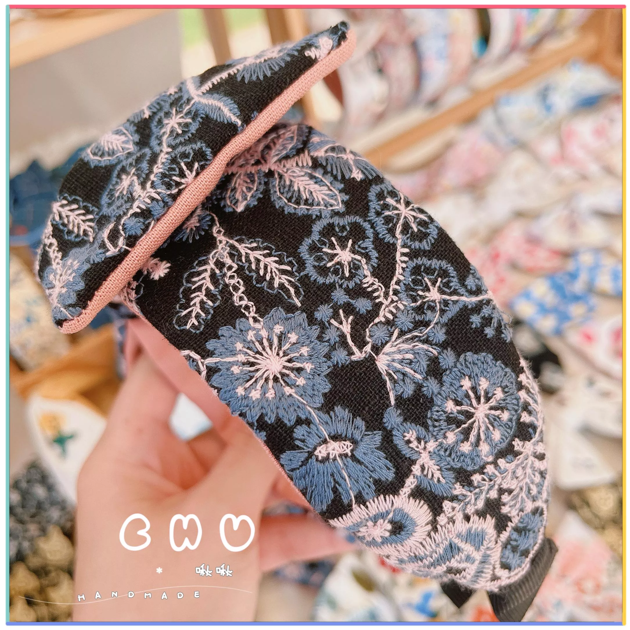 刺繡款|氣質小姐姐 (黑色)|寬版 蝴蝶結 髮箍