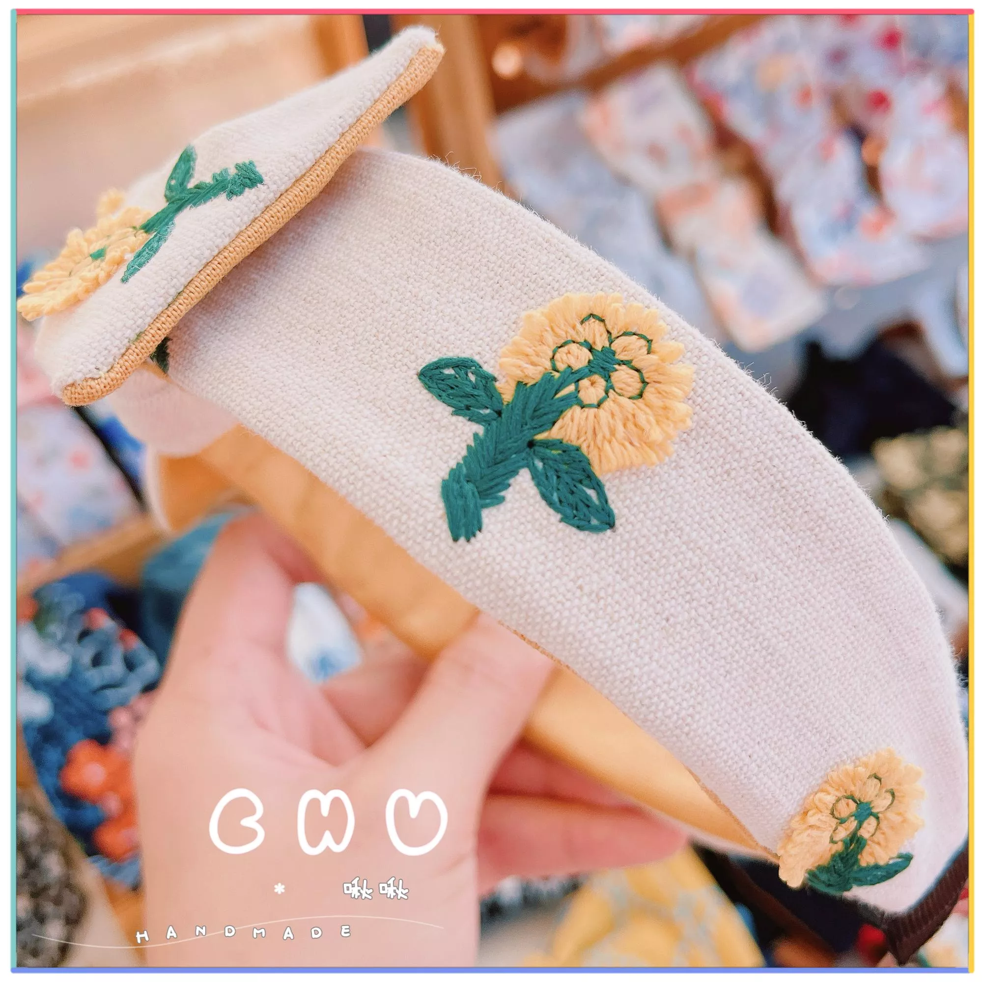 刺繡款|立體-奶油小捲花|細版 蝴蝶結 髮箍