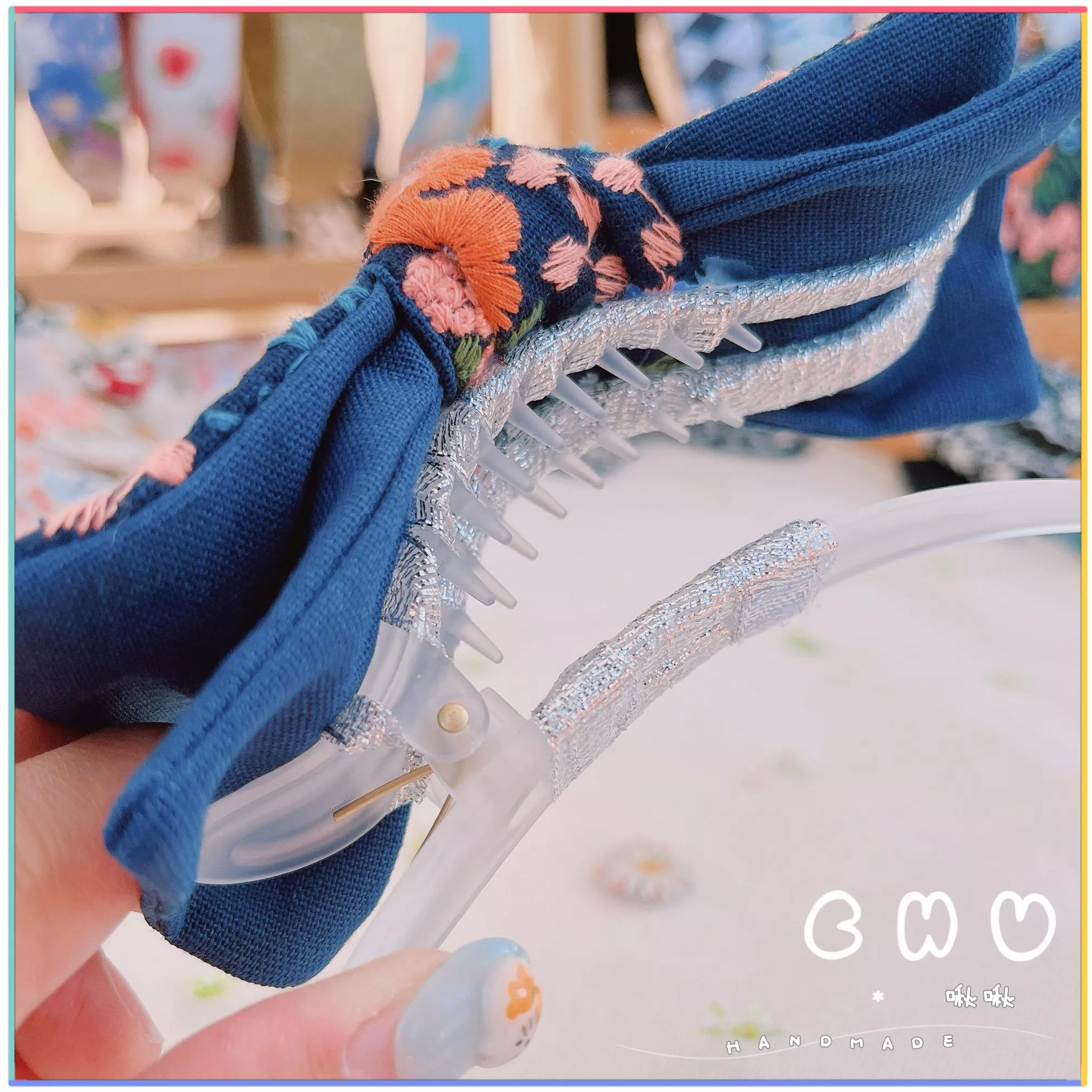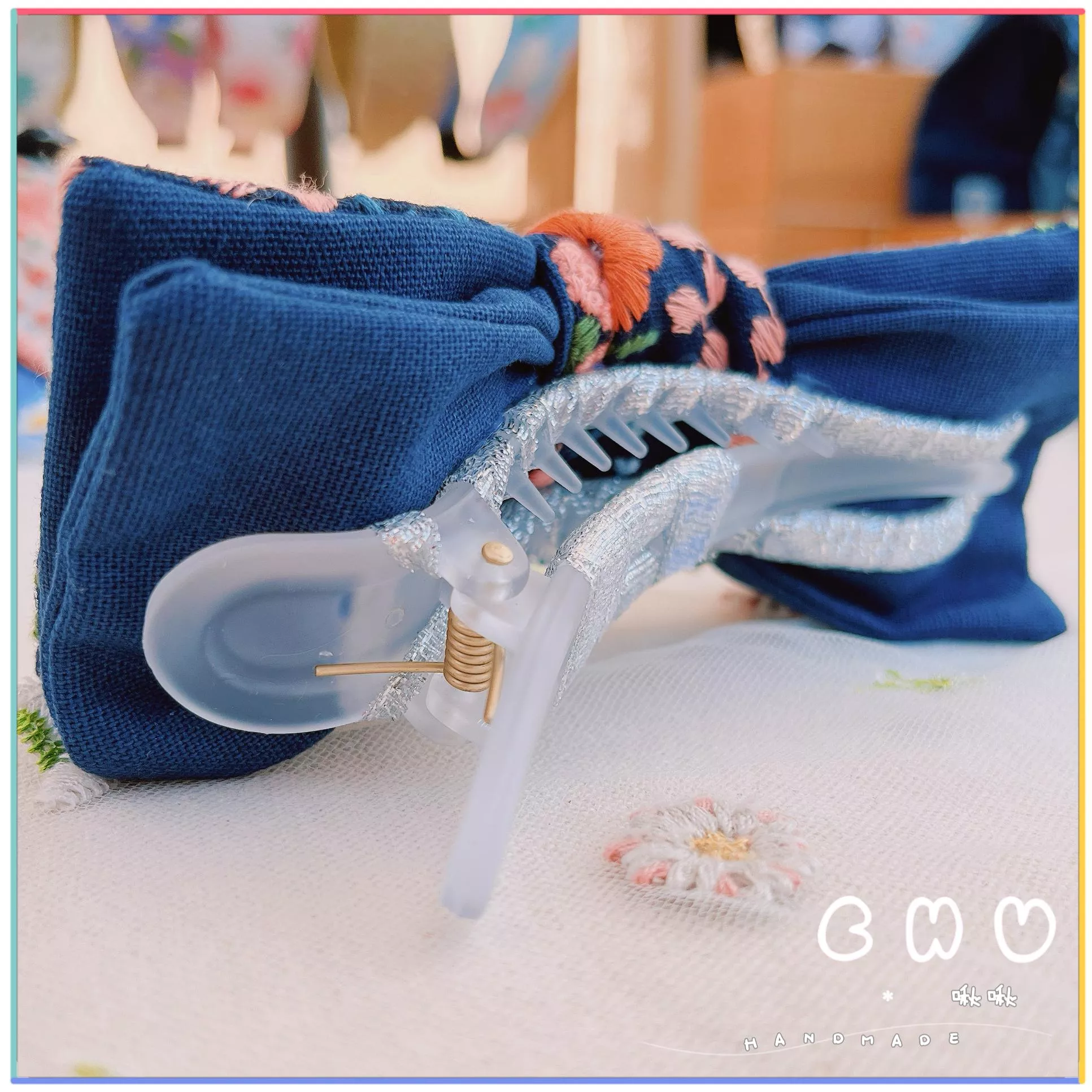 材質:刺繡棉麻 / 塑膠髮夾
