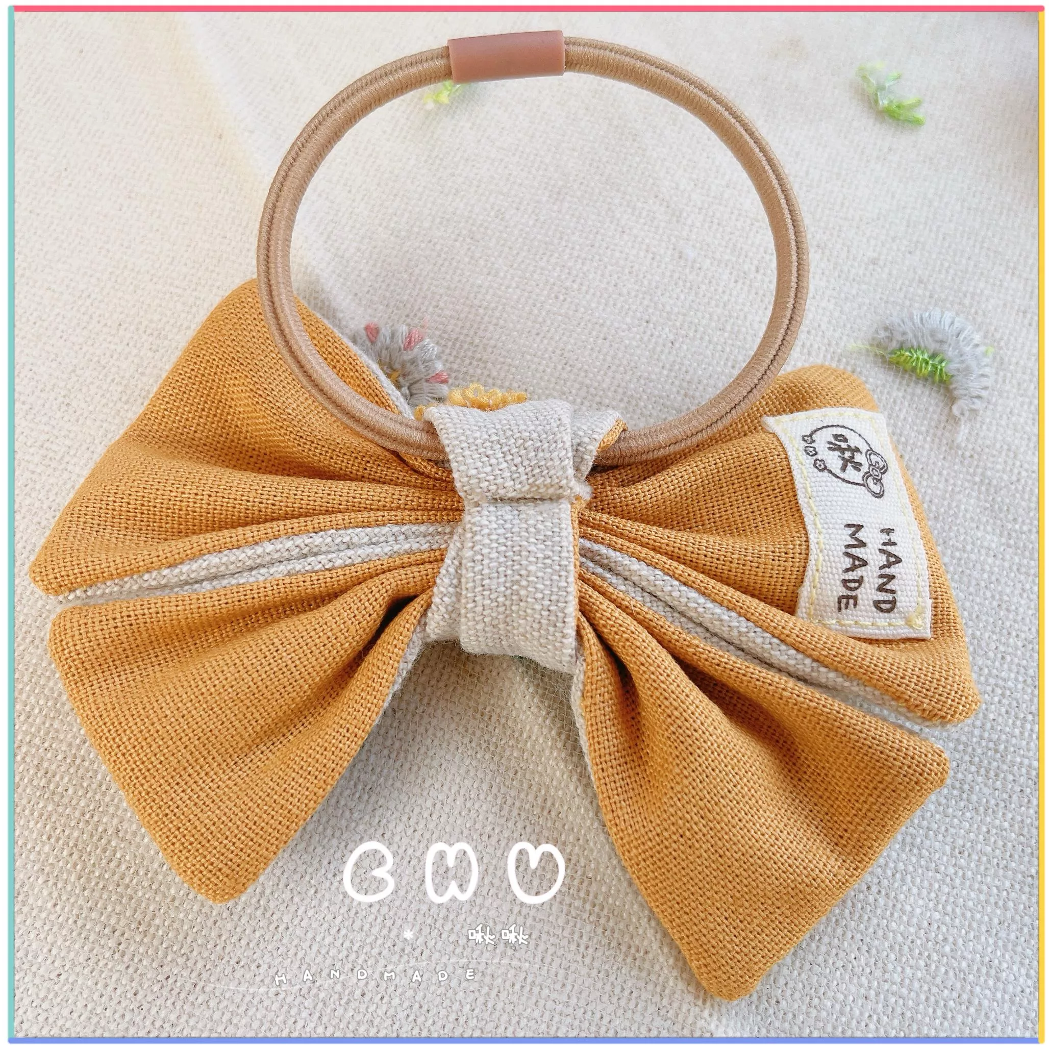 材質:刺繡棉麻 / 台灣製髮圈