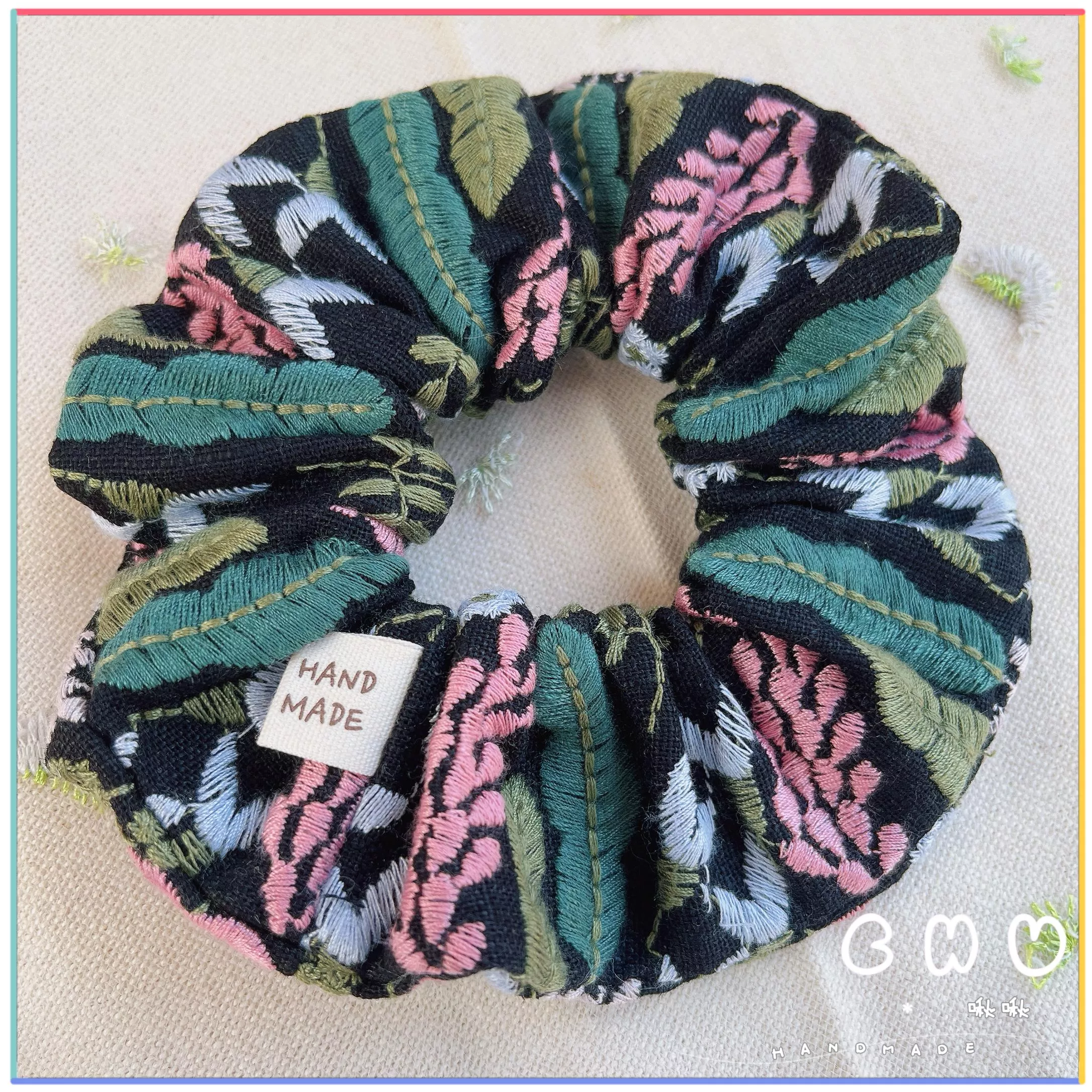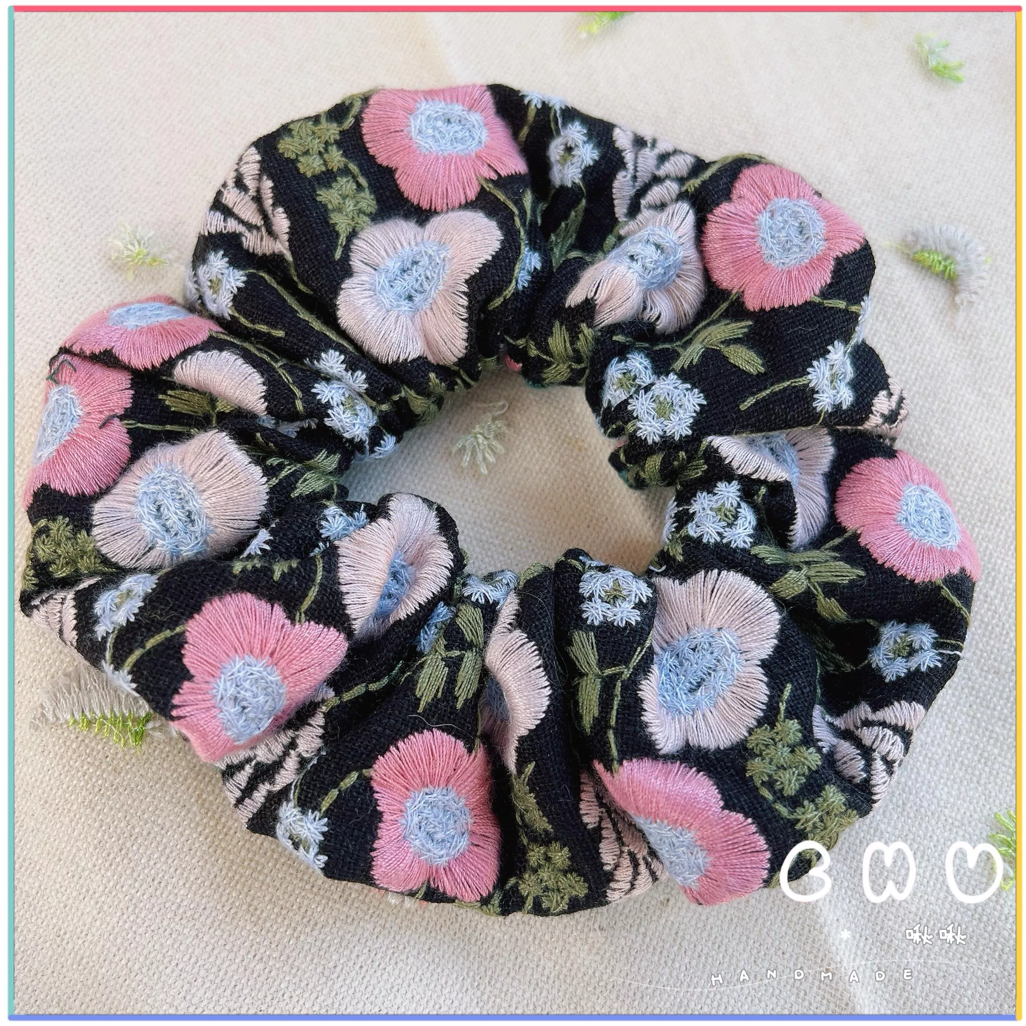 刺繡款|粉紅花朵(黑色)|大腸圈圈
