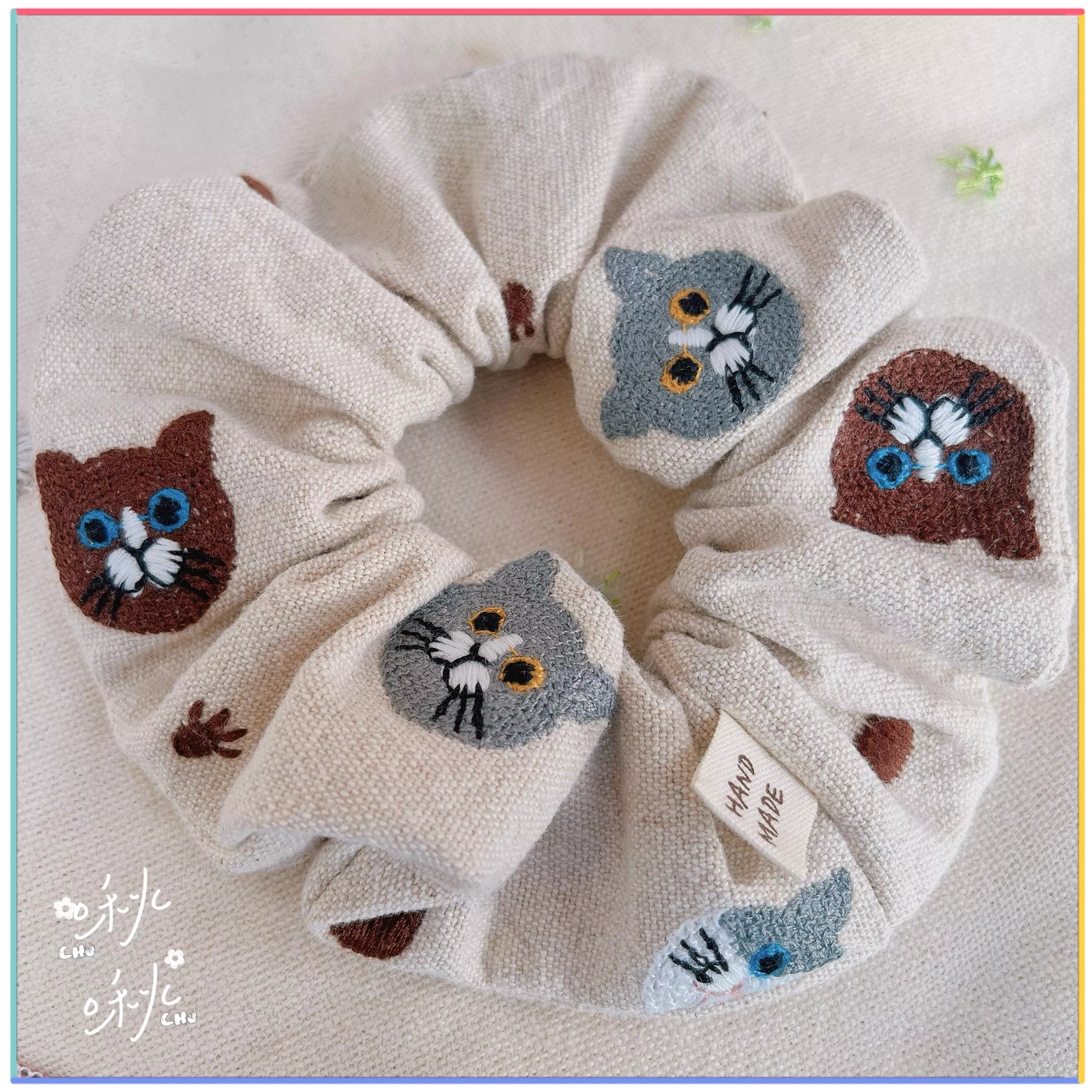 刺繡款|貓貓 (米白色)|大腸圈圈