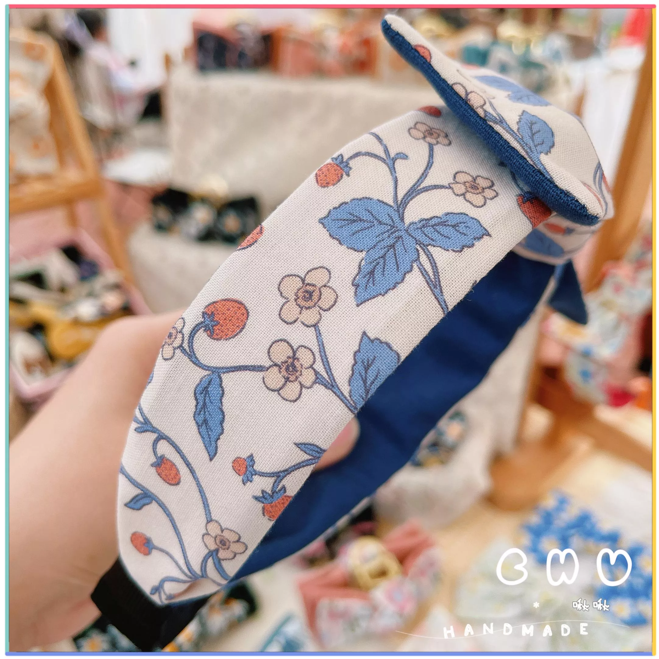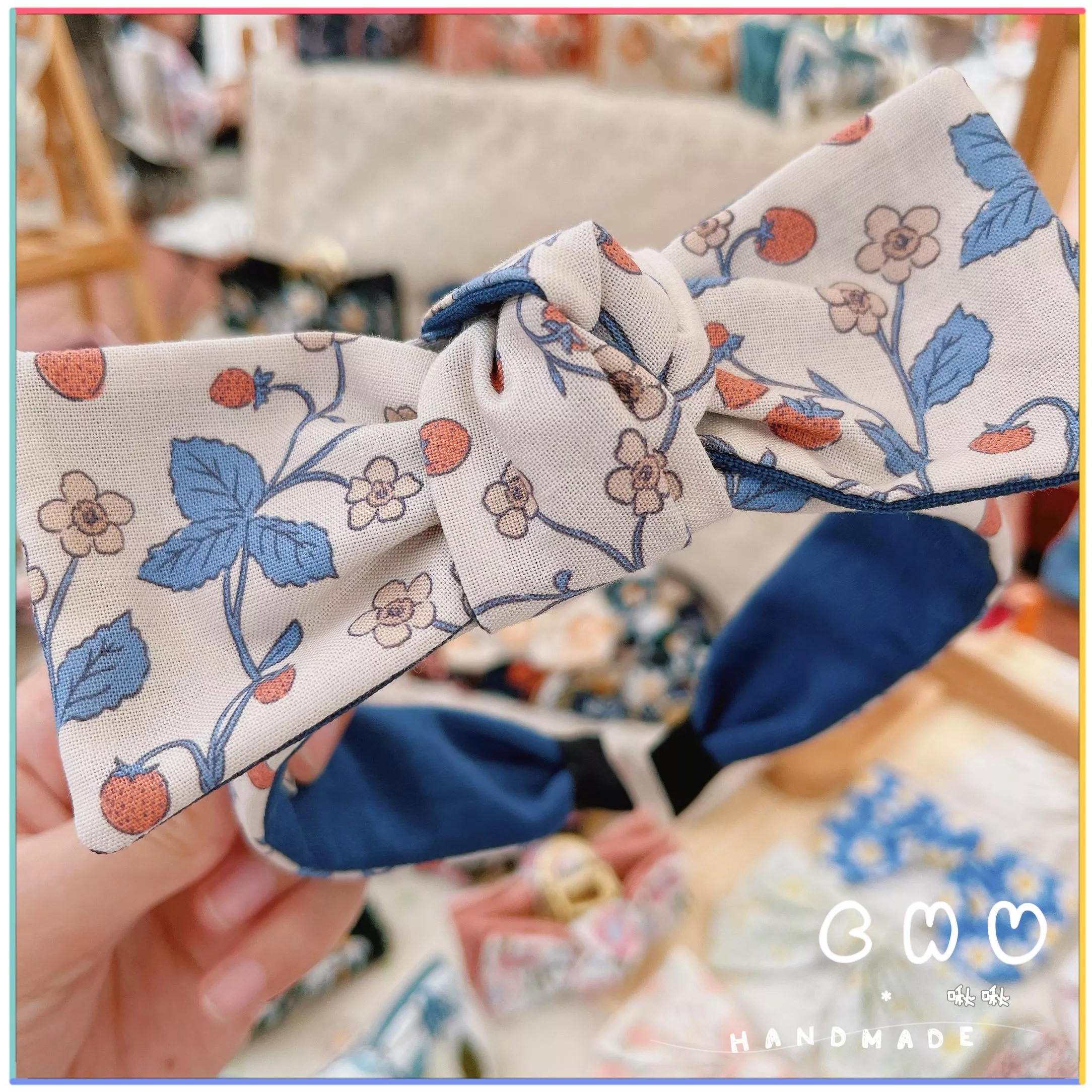 草莓🍓(藍色系)|細版 蝴蝶結 髮箍