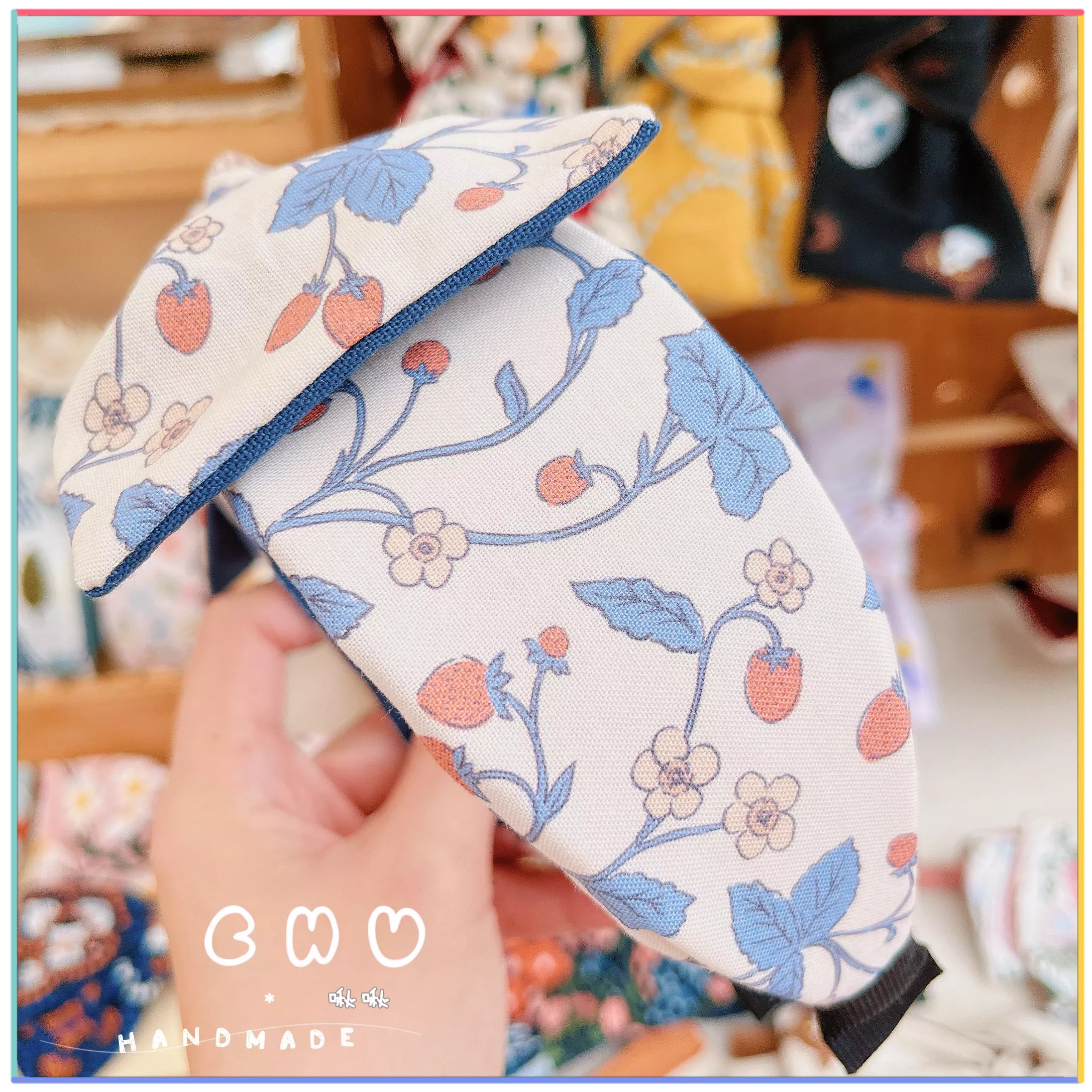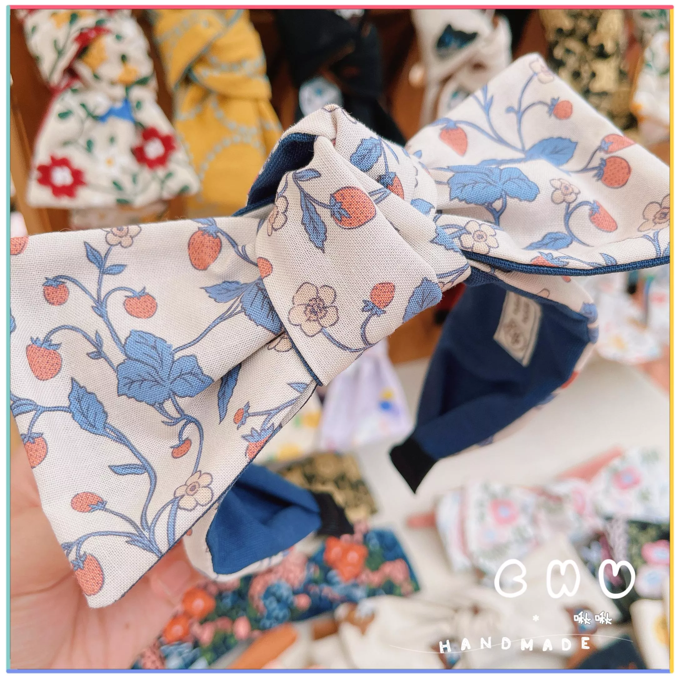 草莓🍓 (藍色系)|寬版 蝴蝶結 髮箍